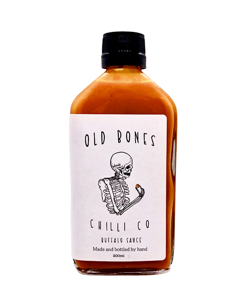 Buffalo wings, pork ribs, burgers all have a best friend… Old Bones Buffalo Sauce fits in perfectly at Hot Sauce Emporium to round off the range and light up your next BBQ!